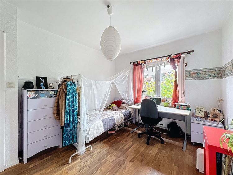 Coup de cœur pour cette charmante maison trois façades d’environ 159 m² (selon PEB), idéalement située dans un petit clos très calme. Le rez-de-chaussée se compose d’un hall d’entrée avec WC invités, d’un lumineux living en L d’environ 37 m² avec parquet, et d’une cuisine séparée super-équipée (lave-vaisselle, réfrigérateur, congélateur, four, hotte et évier). Le séjour offre un accès direct à la terrasse et au petit jardin arboré. À l’étage se trouvent trois chambres de +/- 15 m², 13 m² et 9 m² (toutes avec parquet), ainsi qu’une salle de bains avec baignoire et paroi en verre, double vasque et WC. Le dernier étage comprend une quatrième chambre d’environ 20 m² avec salle de bains attenante équipée d’une baignoire avec paroi en verre, d’un meuble double vasque et d’un WC. La maison dispose également d’une nouvelle chaudière au mazout à condensation (installée en 2025), d’un système d’alarme et de châssis en PVC double vitrage. Elle bénéficie d’un emplacement privilégié, à proximité de la gare de Watermael, du bus 41, des commerces (dont ceux de la Place Keym), ainsi que des parcs, plaines de jeux et du centre sportif avec piscine. Un bien plein de charme, offrant un cadre verdoyant et bucolique. Libre à partir du 15 décembre 2025. Bail de longue durée souhaité. Visites sur rendez-vous.